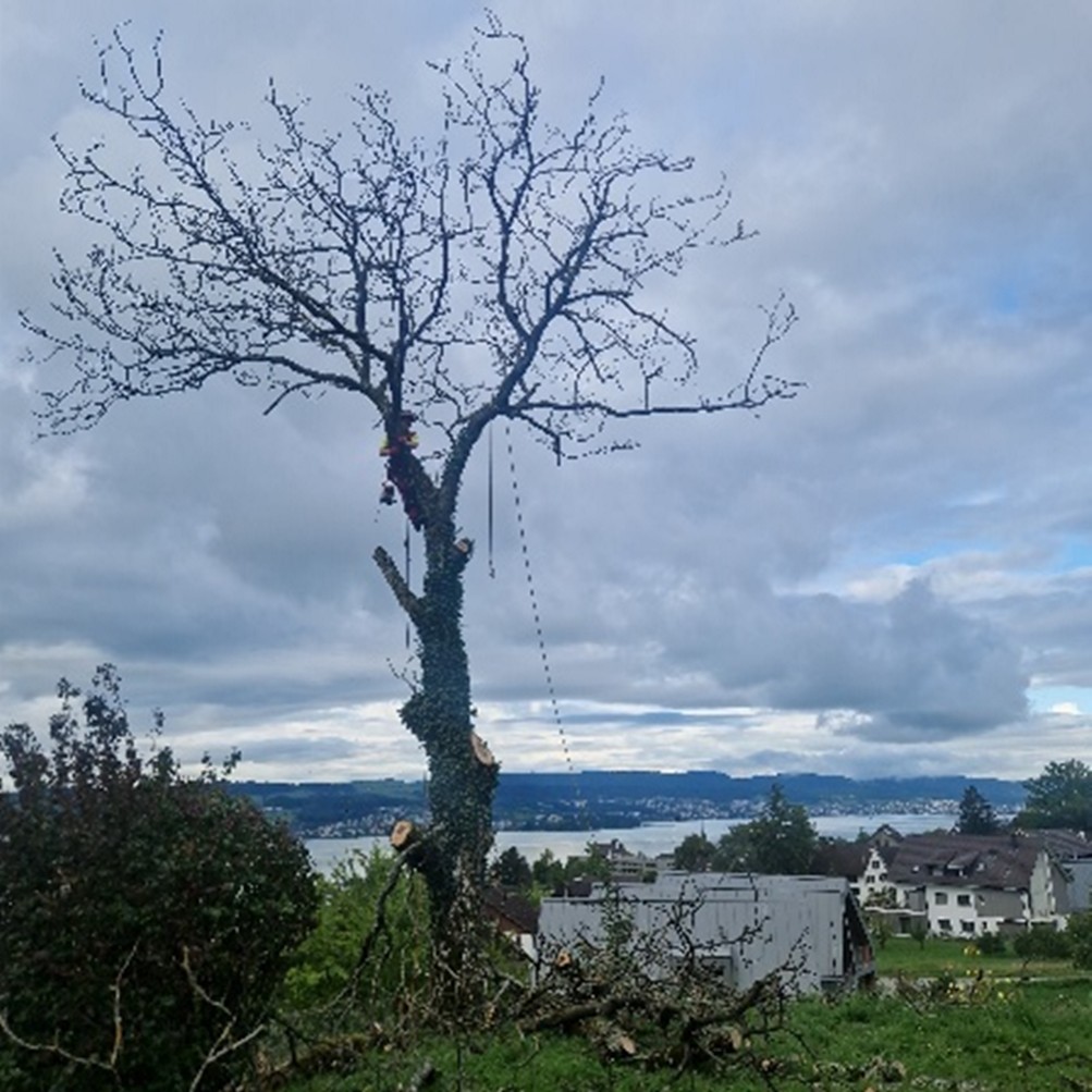 Je nach Standort erfolgt die Fällung am Stück oder das kontrollierte Abtragen in Teilstücken, z. B. bei Nähe zu Gebäuden, Strassen oder Leitungen.