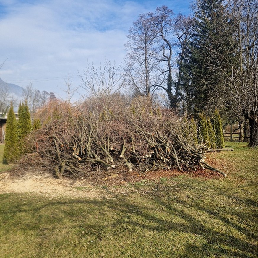 Anfallendes Ast- und Stammholz wird fachgerecht verarbeitet oder entsorgt. Auf Wunsch kann Häckselgut oder Holz weiterverwendet werden.